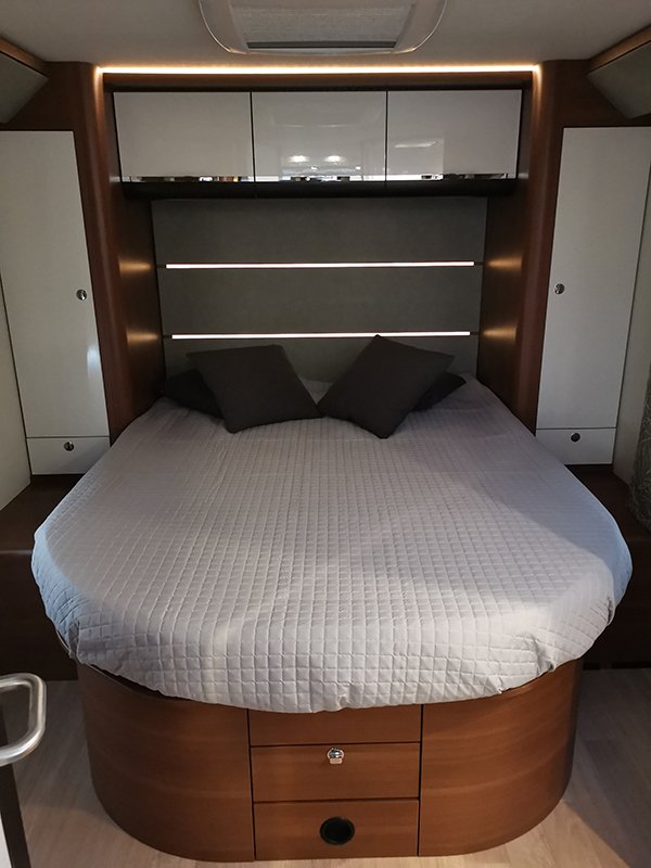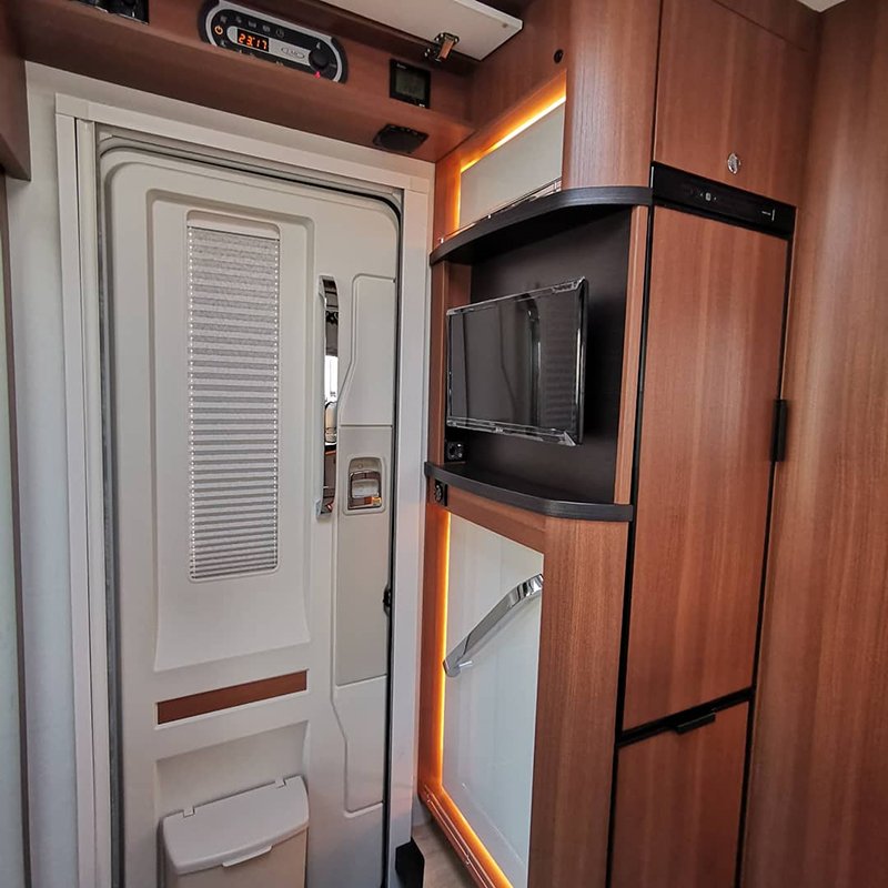 Extras premium: sistema de aquecimento Truma Combi 6 + I-net control, sistema de aquecimento de água e ar 220 Truma, bateria de lítio, coberturas térmicas Remis, TV 20” com suporte até 22”, eixo traseiro alargado para maior conforto e tecnologia LLT (Long Life Technology).